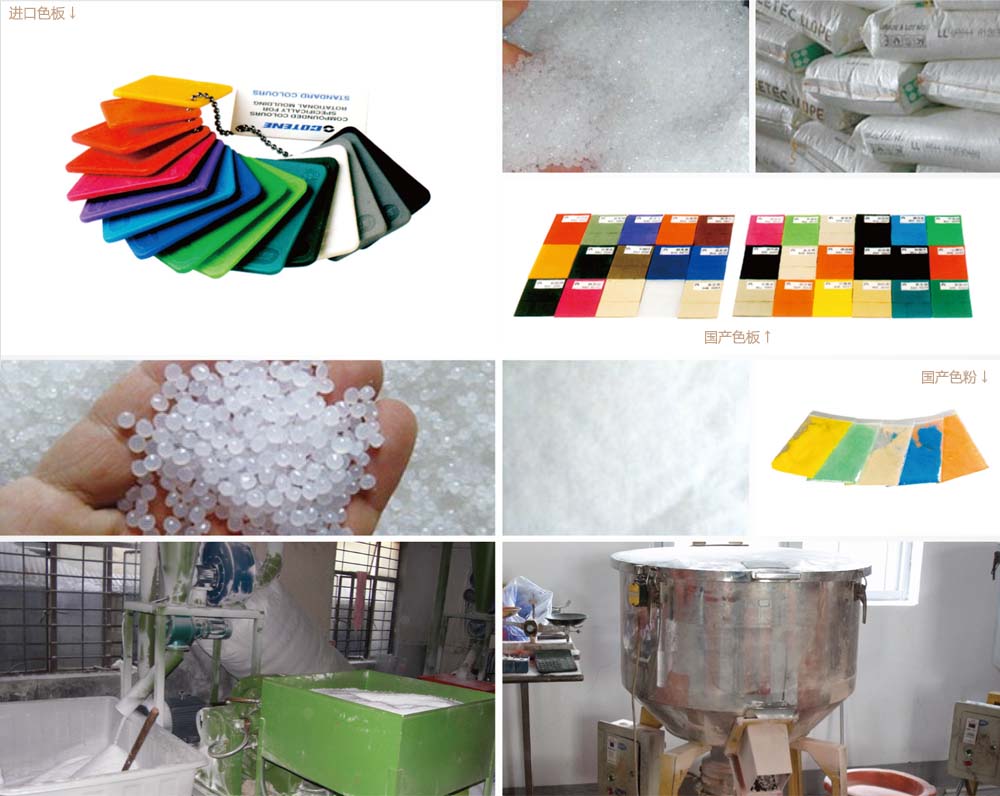 滾塑所采用的原料一般均為進(jìn)口,我們采用樂天、美孚為主。除常用的顏色自己配色外,其余最好采用專門色料供應(yīng)商的原料,如馬來(lái)西亞 ICO及南京聚隆等,能調(diào)配耐強(qiáng)紫外線、抗強(qiáng)氧化性、甚至阻燃等專用料。